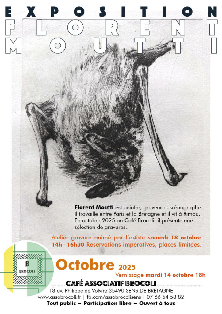 Animé par la curiosité et la création du lien social, Florent Moutti nous propose ses gravures autour d’une triple thématique : le cirque, les portraits et les chauves-souris.